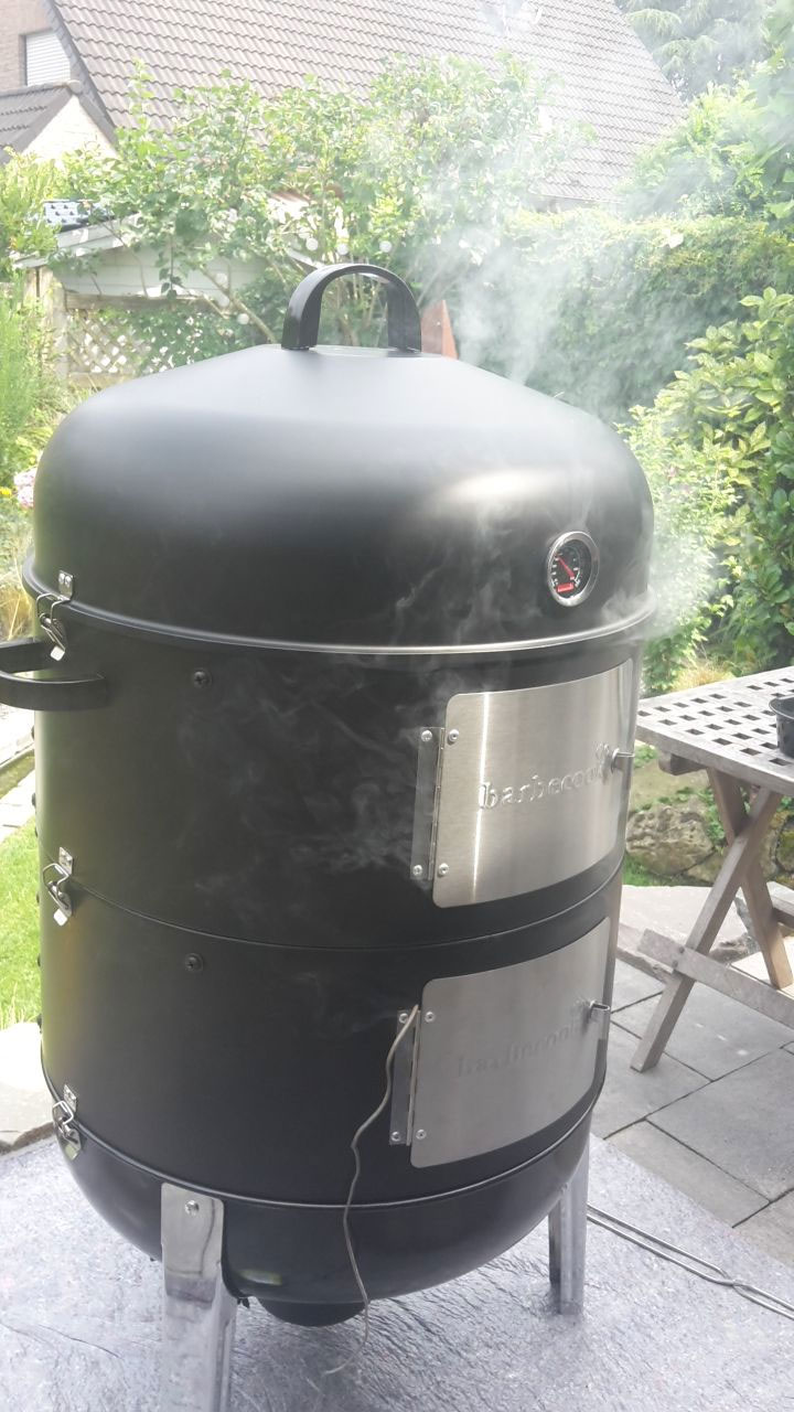 Wir in der Überschrift zu lesen ist es dann ein Barbecook XL geworden. Jetzt werde Ihr euch sicherlich fragen, warum gerade einen Barbecook. Die Antwort ist mehr als einfach. Das Teilchen gab es bei Brands4Friends im Angebot. Und der Preis von 135,90 war so interessant, das ich einfach zuschlagen musste. Einfacher konnte ich meine Frau nicht überzeugen. Der Einstiegspreis war relativ gering, selbst wenn das Teilchen nur 3 bis 4 mal im Jahr genutzt wird und vielleicht nur 3 Jahre hält. Da war die Regierung schnell überzeugt. Bevor man 400 EUR und mehr ausgibt. Also überzeugt und bestellt. Und ich muss euch sagen. Ich war positiv überrascht. Sicherlich muss man keine perfekten Spaltmasse in Kauf nehmen und ein wenig mit Kaminofendichtungsband nacharbeiten, aber im Großen und Ganzen tut er was er soll. Trotz Thermometer was nicht wirklich aussagekräftig ist. Aber dafür gibt es ja digitale Grillthermometer.